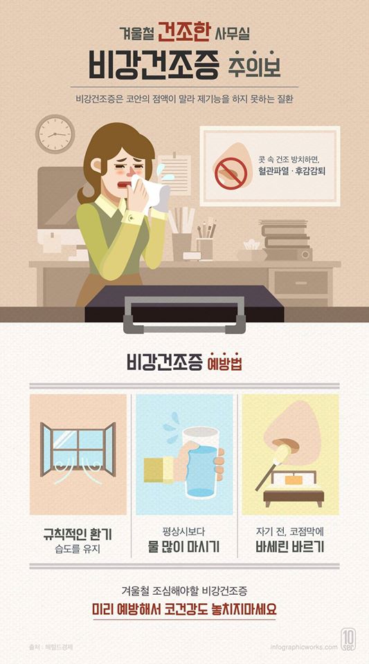 안녕하세요 벨라기지입니다 겨울에는 기온이 낮고 공기가 건조해지면서 비정상적으로 비강건조증이 발생하게 됩니다 다른 계절에 비해 건성동증후군 등의 코질환이 30% 이상 증가하며 증상이 더욱 심해진다고 합니다.
