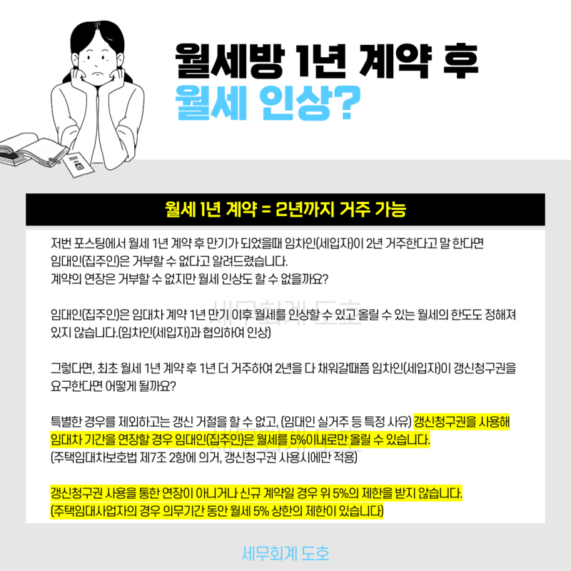 계약 갱신 시 월세는 최대 5%까지 인상될 수 있다는 것은 널리 알려진 사실이다. 그러나 5%라는 수치는 상한선일 뿐이며, 이 한도를 초과하지 않는 한 집주인은 월세를 임의로 인상할 수 없습니다. 계약을 갱신할 때 임차인은 반드시 집주인의 요구를 받아들일 필요는 없으며, 다양한 상황에 따라 결정할 수 있습니다. 월세 인상 요청을 받은 경우 법적 근거와 함께 어떻게 대응해야 하는지 자세히 살펴보도록 하겠습니다. 우선, 1년 임대차 계약을 했다면, 갱신 시 집주인이 월세 인상을 요구하더라도 이를 받아들일 필요가 없습니다.