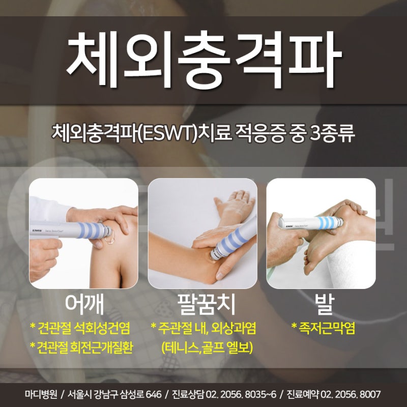 체외충격파 치료의 빈도는 증상에 따라 다를 수 있으나 일반적으로 1일 2000회, 주 2~3회를 기준으로 합니다. 통증이 있는 모서리와 결석 극상근 힘줄에 대한 체외 충격파 요법과 비교적 간단한 극상근 테이핑이 어깨 통증 완화에 도움이 될 수 있습니다.