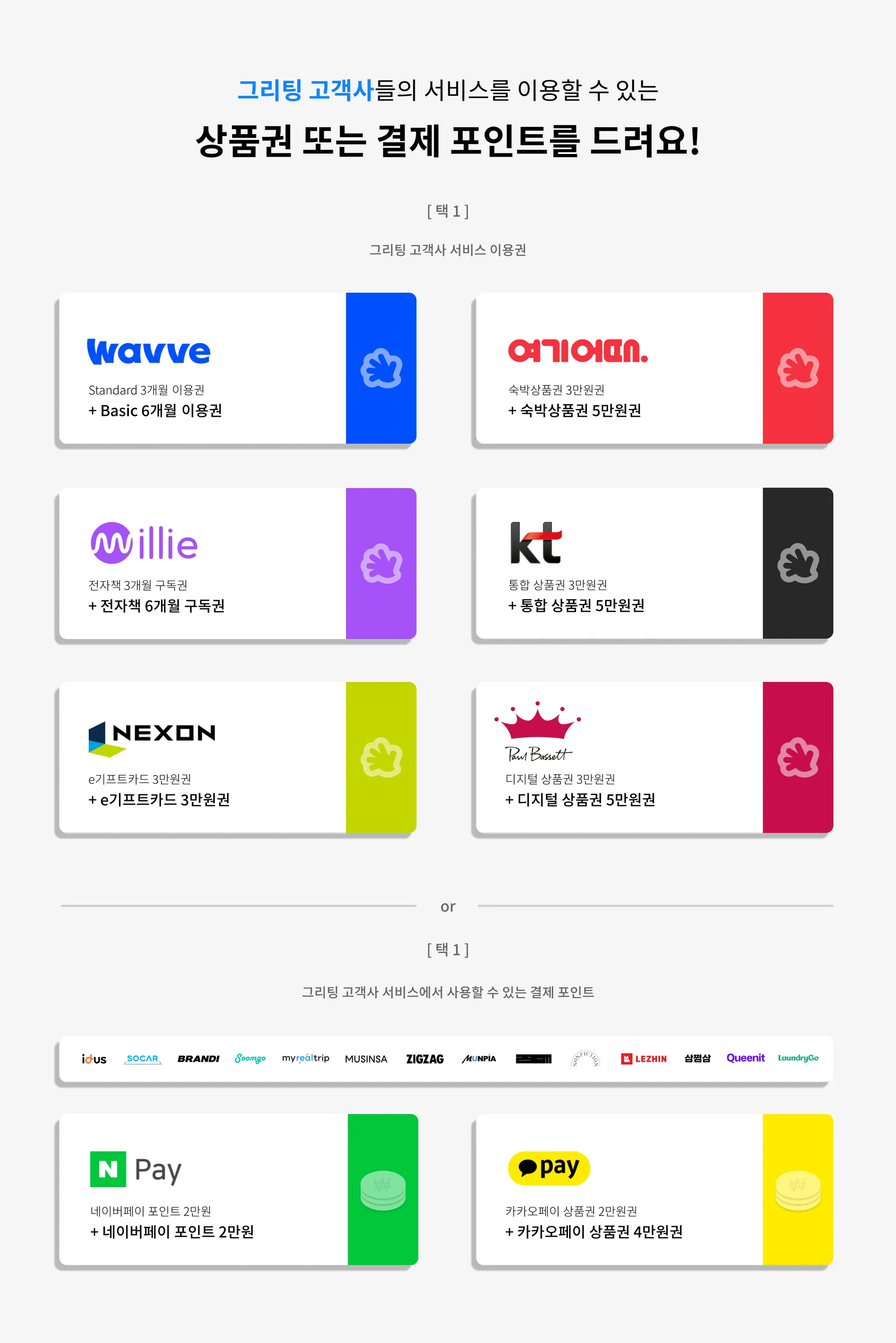 그리팅에서는 4주년을 기념하여 출석체크 이벤트를 진행하고 있습니다. 현대그린푸드가 운영하는 곳으로 건강한 식사를 즐길 수 있도록 돕는 곳입니다. 다이어트 메뉴부터 주로 샐러드와 샌드위치를 사서 먹습니다.